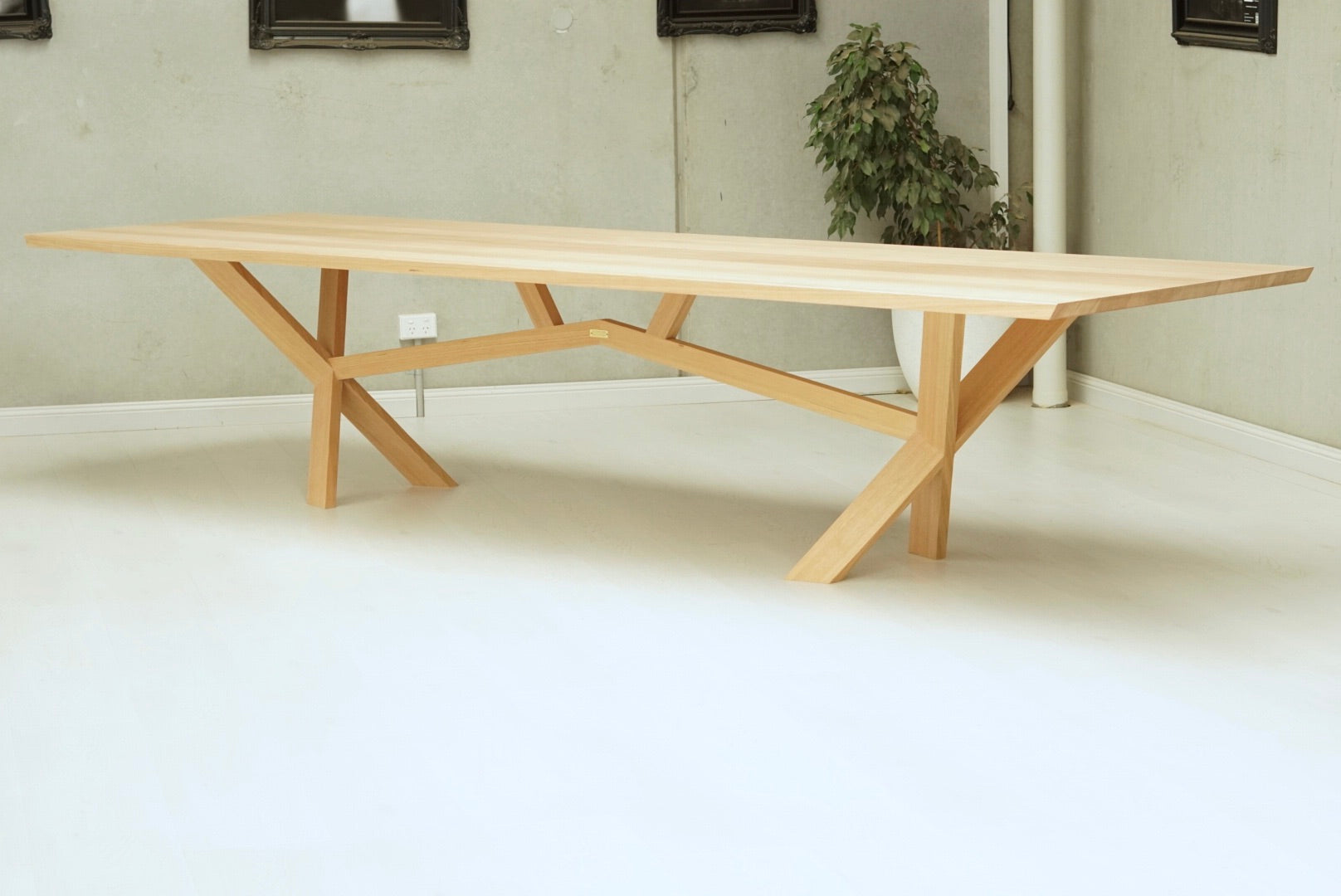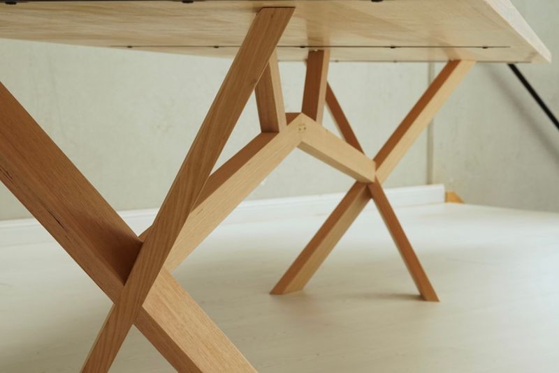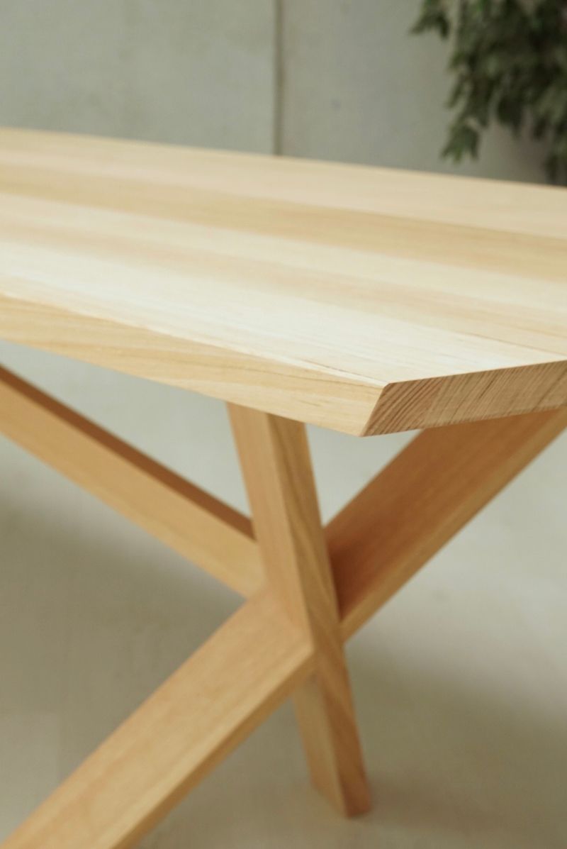 A long narrow dining table that suits the narrow space the table will be placed in. Designed to seat guests all around the table without the table legs intruding on leg space. Crafted as a statement piece, not just a dining table, it invites guests to sit down and enjoy a family gathering and good food.
