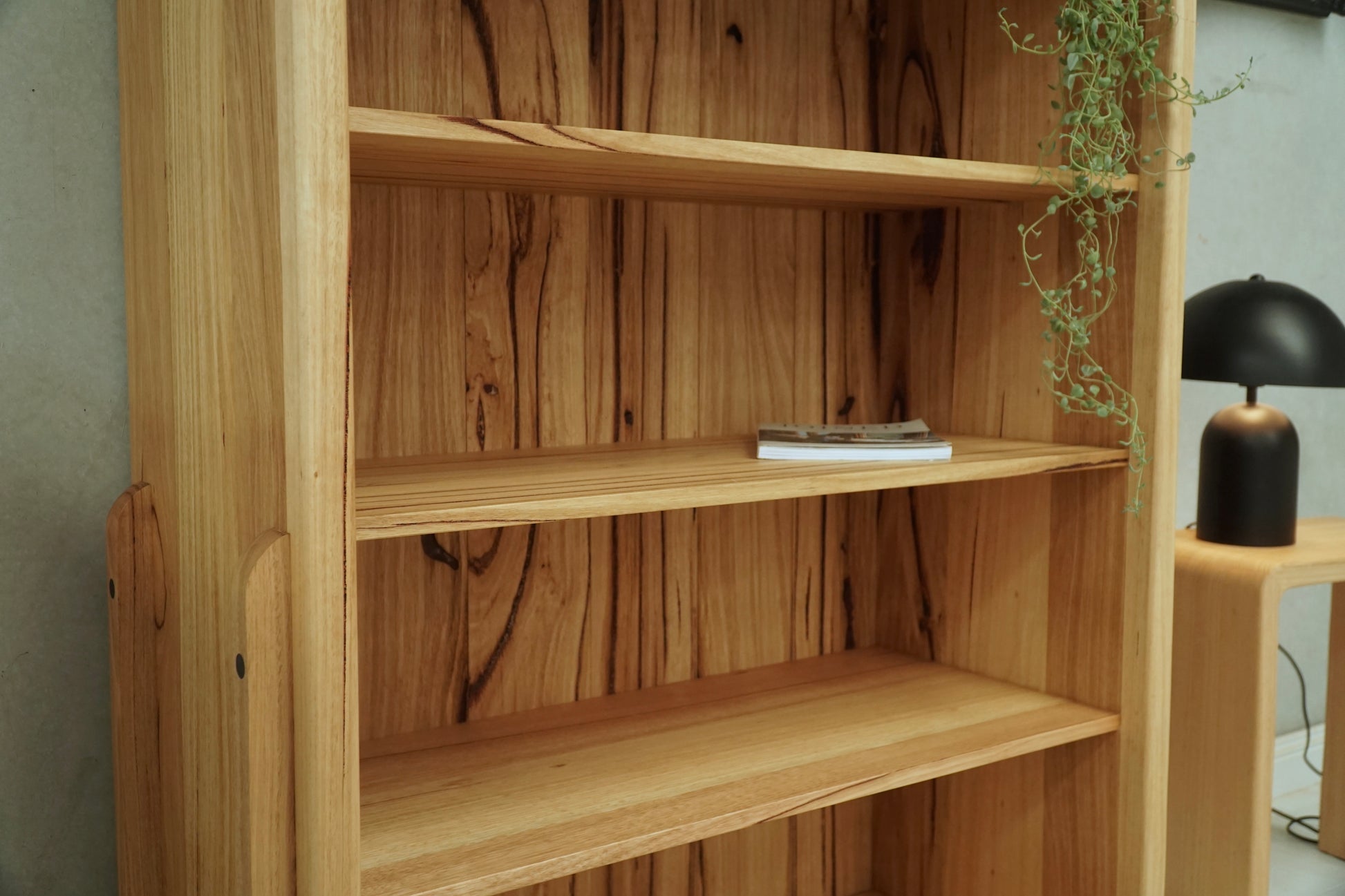 A handcrafted natural timber bookshelf that looks beautiful with or without books.