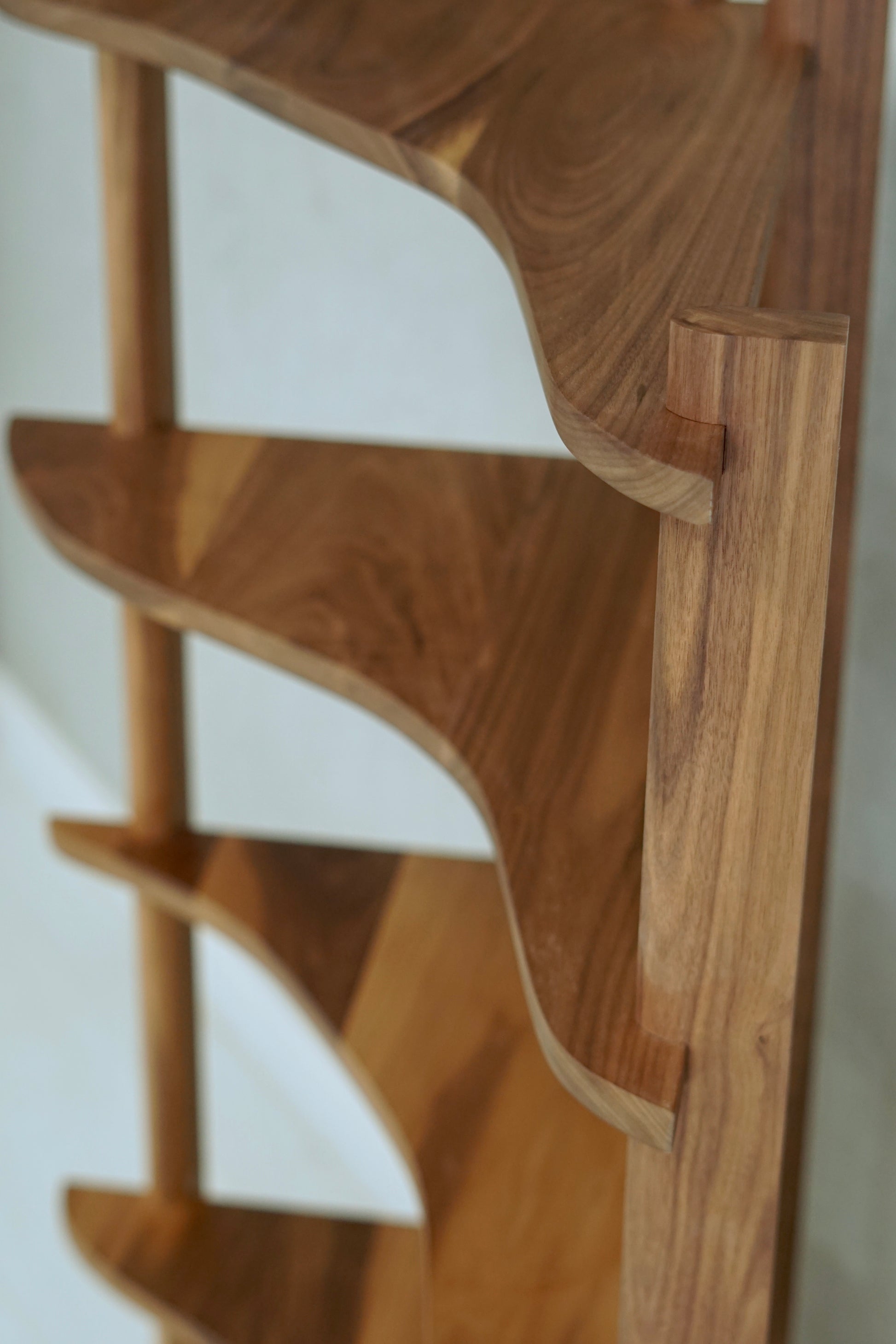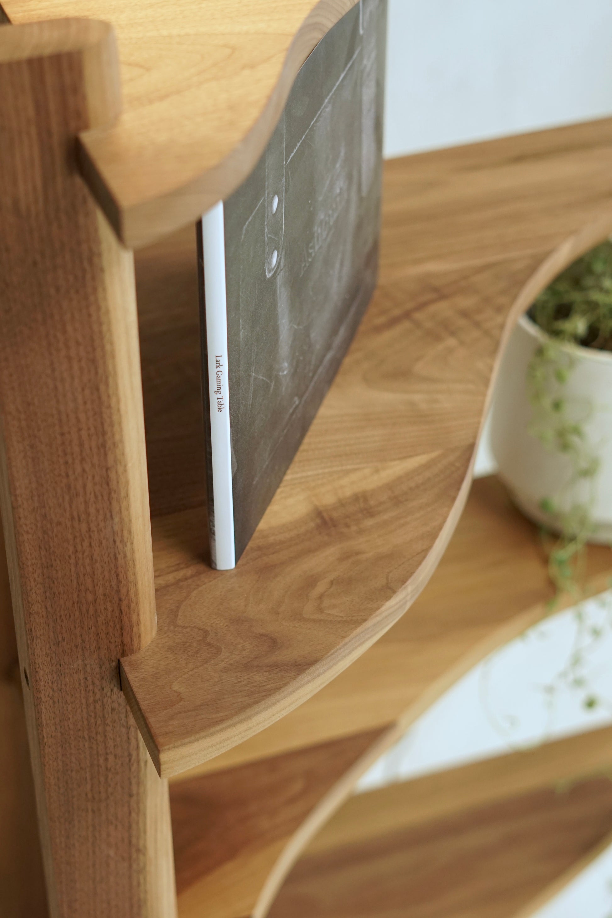 Handcrafted from solid American Walnut, this shelving unit showcases the natural elegance and depth of one of the world’s most sought-after timbers. Designed with gentle curves that flow seamlessly through its form, the piece balances sculptural beauty with practical function.