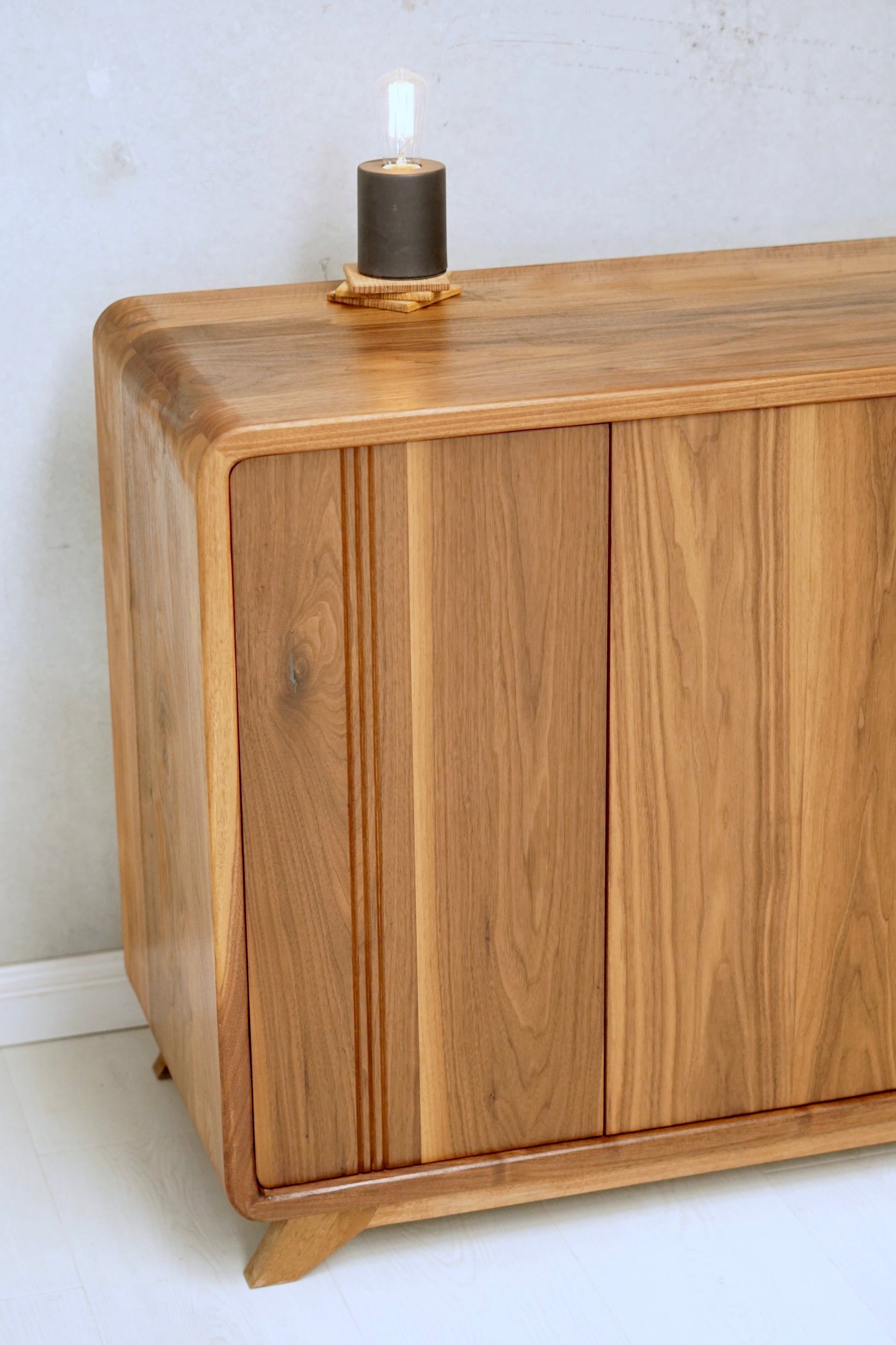 A solid American walnut buffet, defined by soft curves and subtle restraint.